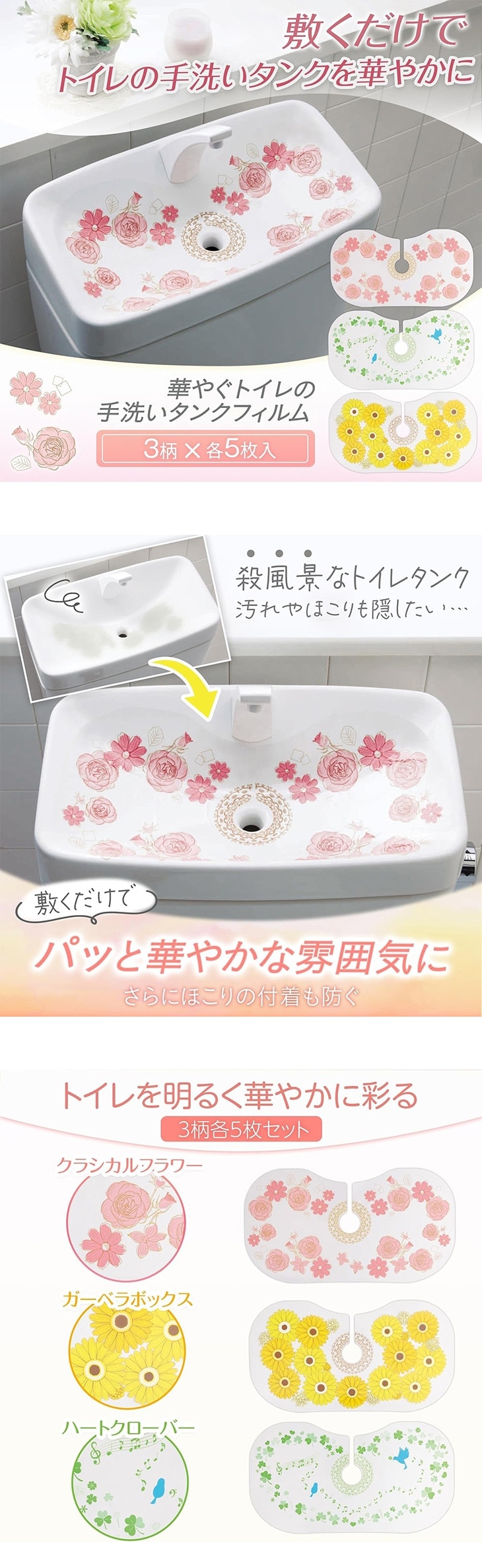 華やぐトイレの手洗いタンクフィルム(3柄×5枚)×4セット