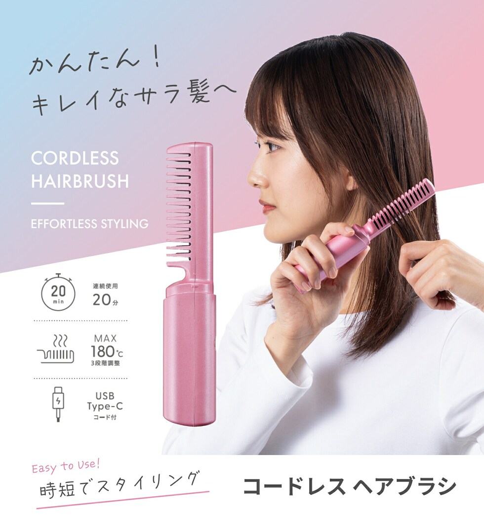 コードレスヘアブラシ ヘアアイロン ブラシ コードレス 充電式 ミニ 持ち運び 軽量 寝癖直し ヒートブラシ ストレート ストレートアイロン USB 旅行用 携帯用 外出先 出張
