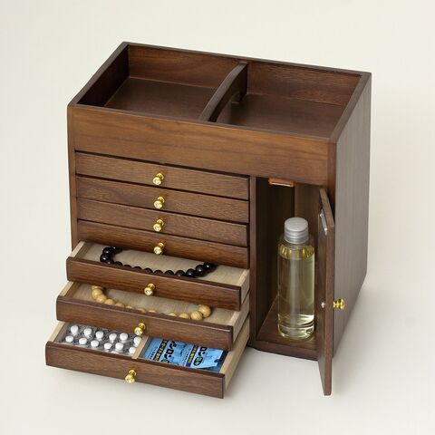 ●サイズ/約幅30.5×奥行18×高さ28.5cm、上部内寸(2ヶ所):約幅13.5×奥行16.4×高さ4.5cm、引出内寸(7杯):約幅18.5×奥行15.5×深さ1.5cm、扉内内寸:約幅7.5×奥行16×高さ20.5cm