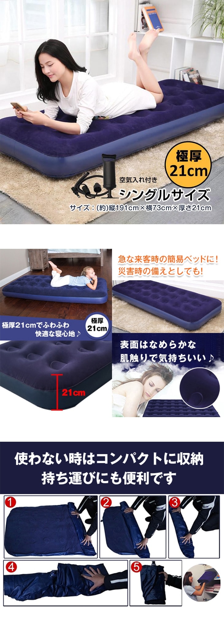 エアーベッド 21cm厚 コンパクト 来客用 簡易ベッド 手動