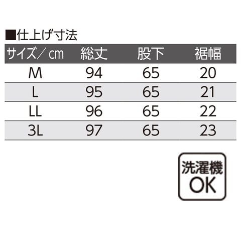 | サイズ | ウエスト | 股下 | 総丈 | 裾幅 |