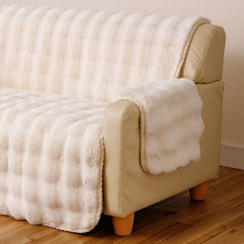 ふわふわラビットファー調アームカバー 2枚組 アームレストカバー ソファー用