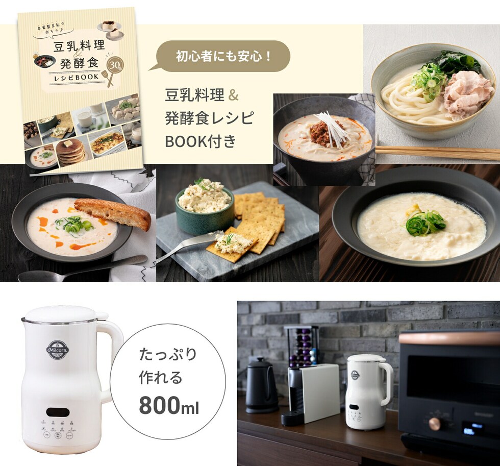 3.ご家族で楽しめる「大容量800ml」: 一度にたっぷり約4杯分(800ml)作れるので、ご家族の健康習慣にもぴったり。朝食のスープや、食後のヘルシーデザート作りにも大活躍します。