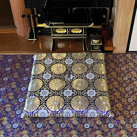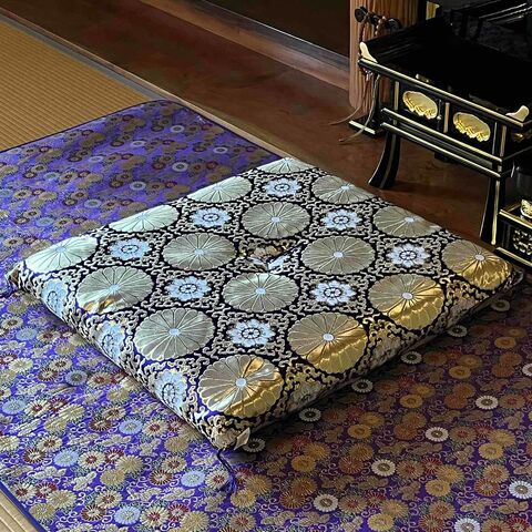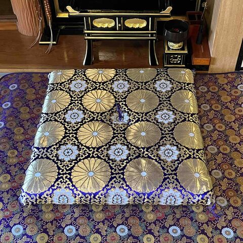 金襴生地を使用し荘厳性を高め、中綿には、圧縮綿を使用している為、安定した座り心地を保ち足がつかれにくく、型崩れしにくい座布団です。