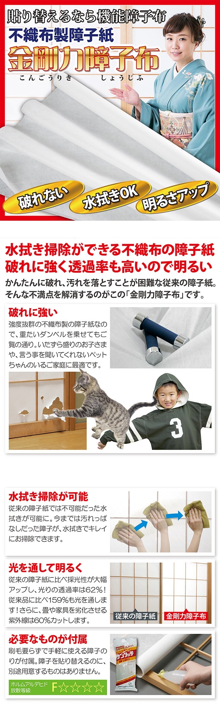 金剛力障子布4枚組 障子 張り替え 破れない 耐水性