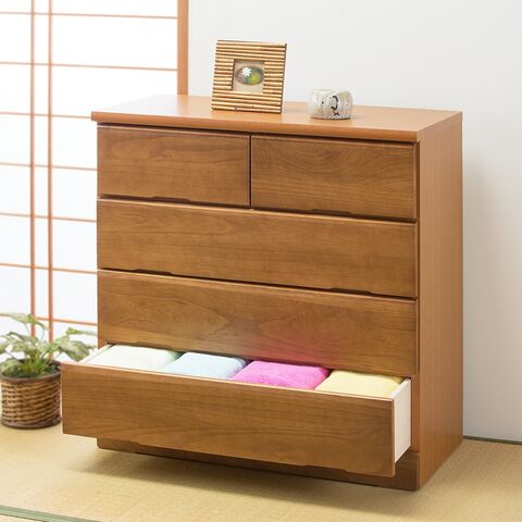 〈大川産〉天然木衣類収納チェスト 60cm幅4段 完成品