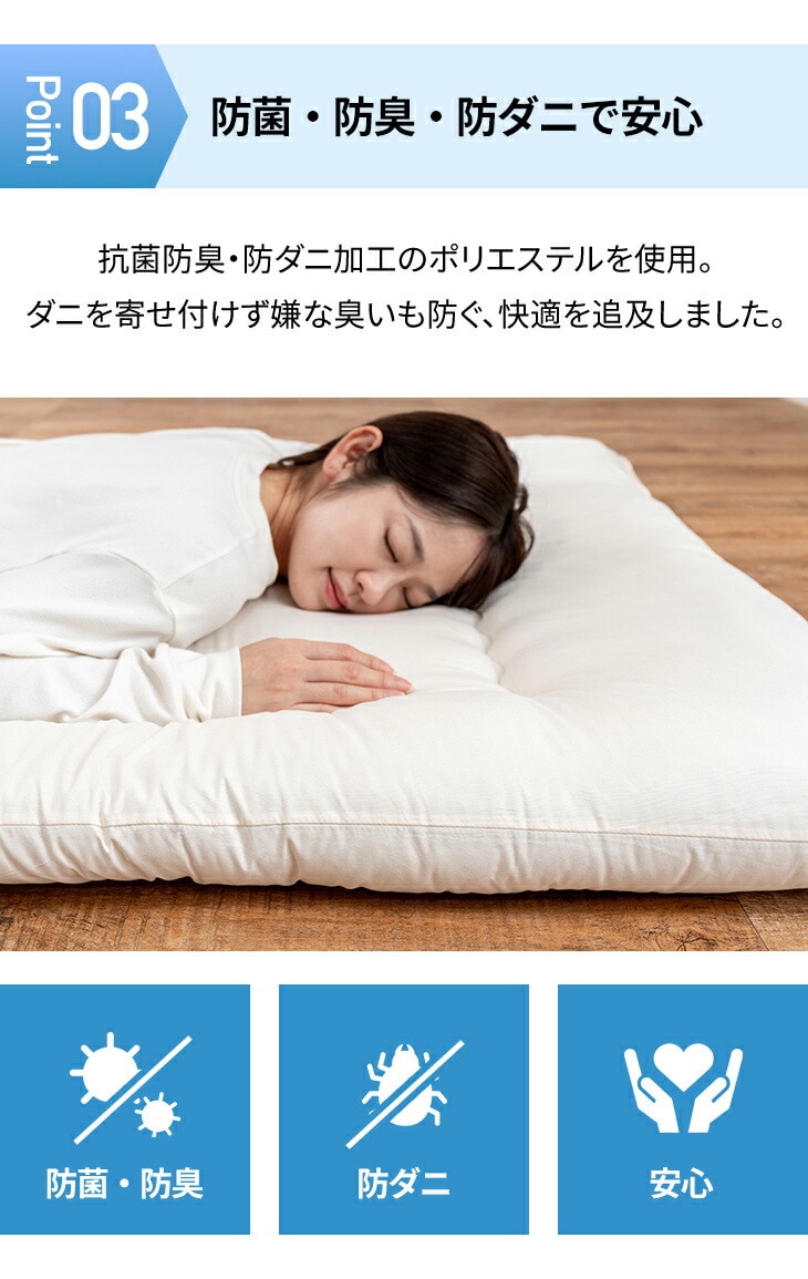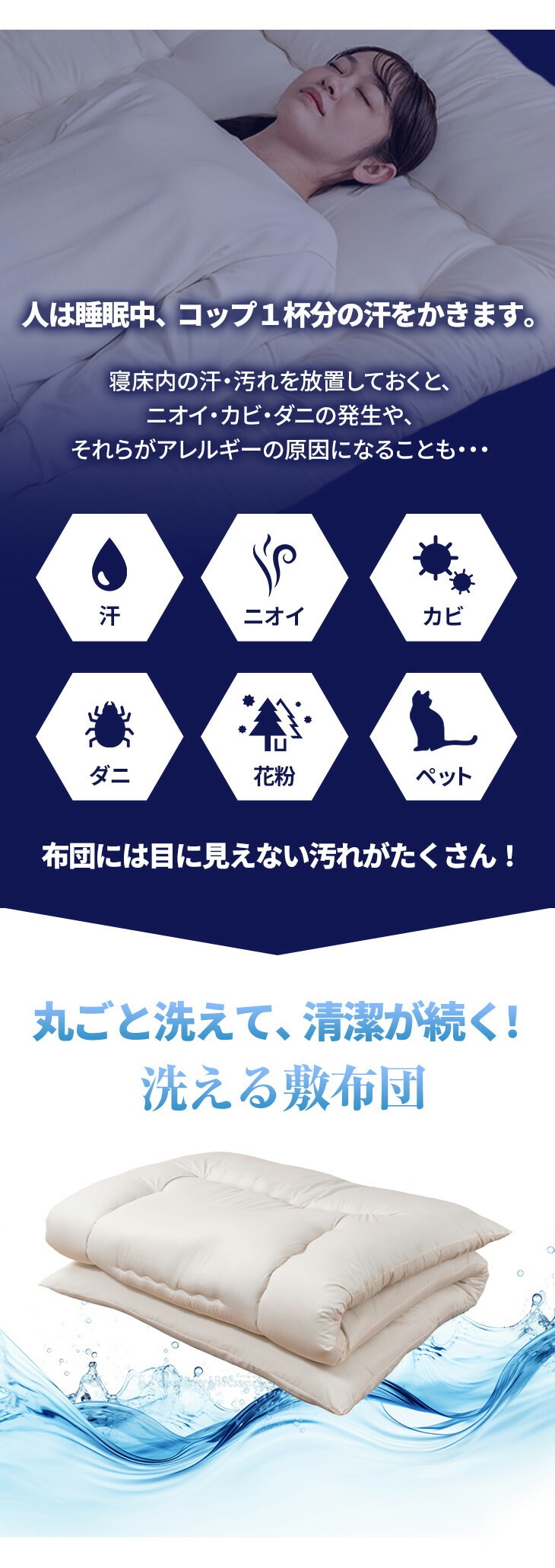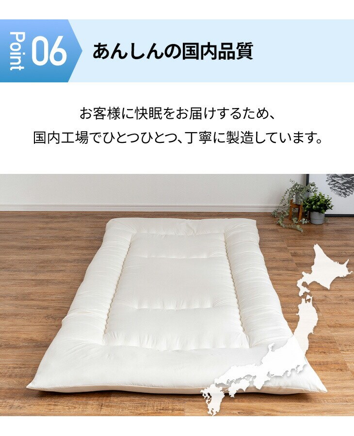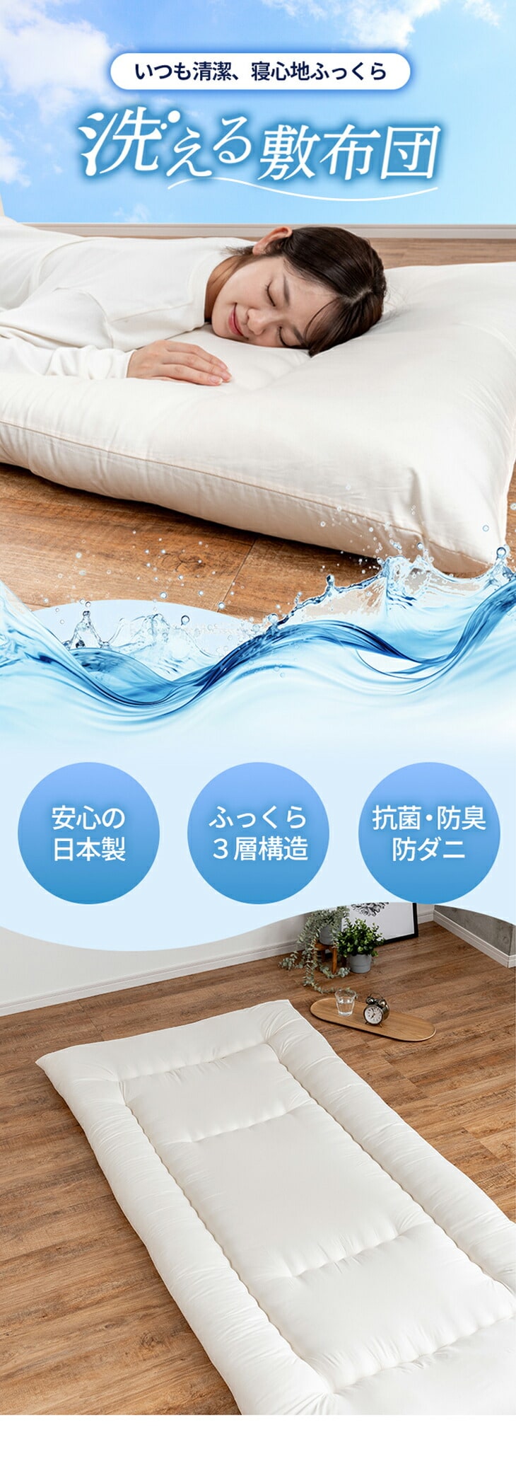 日本製 防ダニ・抗菌防臭加工洗える敷布団 シングル アイボリー