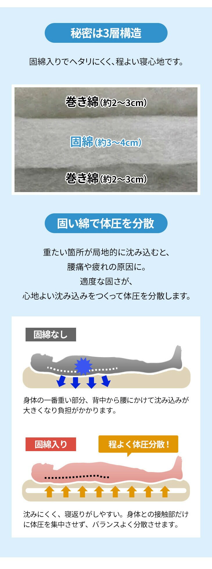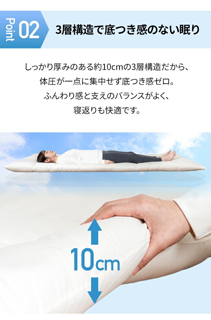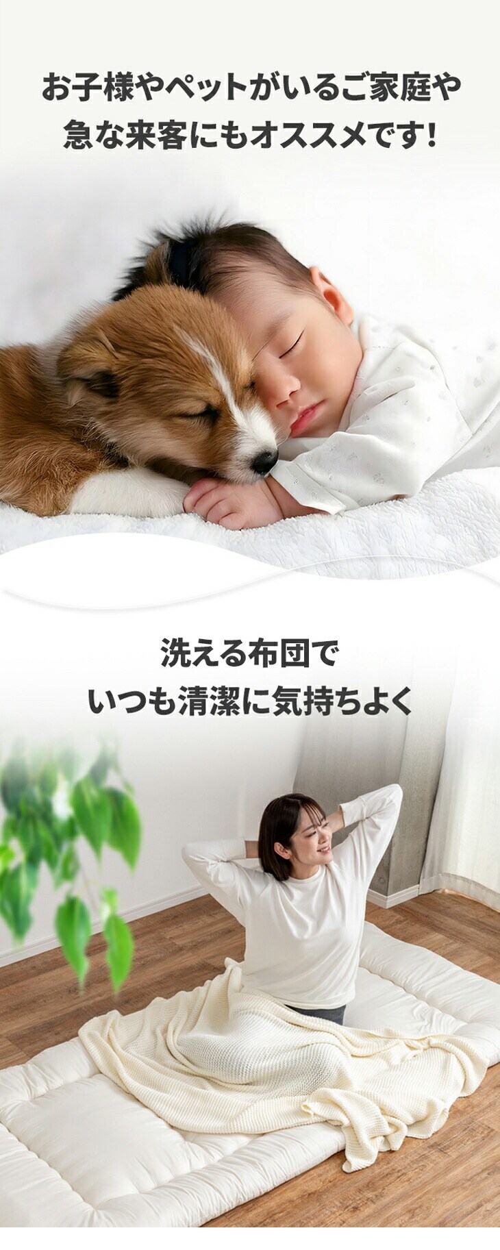 日本製 防ダニ・抗菌防臭加工洗える敷布団 シングル アイボリー