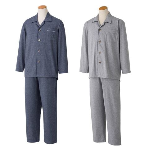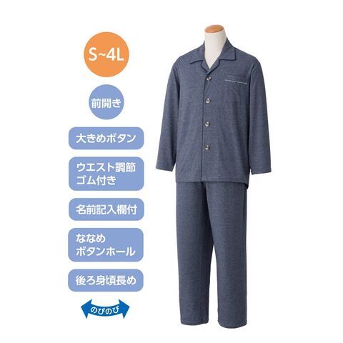 大きめボタンのびのびストレッチパジャマ 紳士用 3L~4L 大きいサイズ シニア 介護パジャマ 入院着 前開き リハビリ 高齢者 ワンタッチ らくらく 寝巻き 日本製