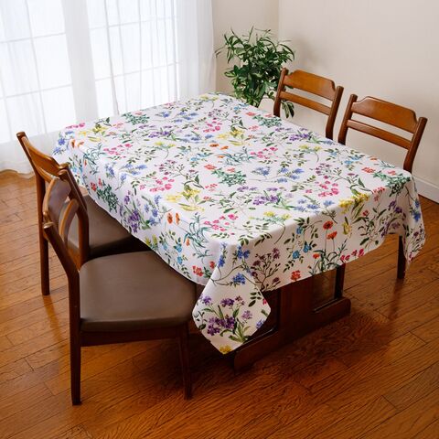フラワー柄はっ水テーブルクロス 長方形(小)145×180cm 花柄 長方形 撥水 はっ水 おしゃれ かわいい 汚れ防止 丸洗いOK 華やか