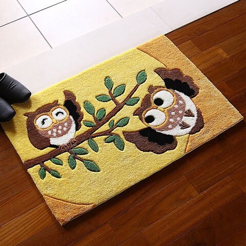 ふくろうフックマット 45×75cm 玄関マット 室内 屋内 風水 縁起物 梟 フクロウ おしゃれ 玄関 ラグ 滑り止め 厚手