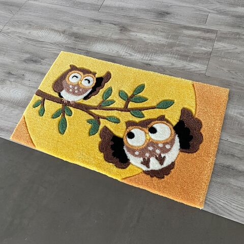 ふくろうフックマット 65×120cm 玄関マット 室内 屋内 風水 縁起物 梟 フクロウ ロングタイプ おしゃれ 玄関 滑り止め 厚手