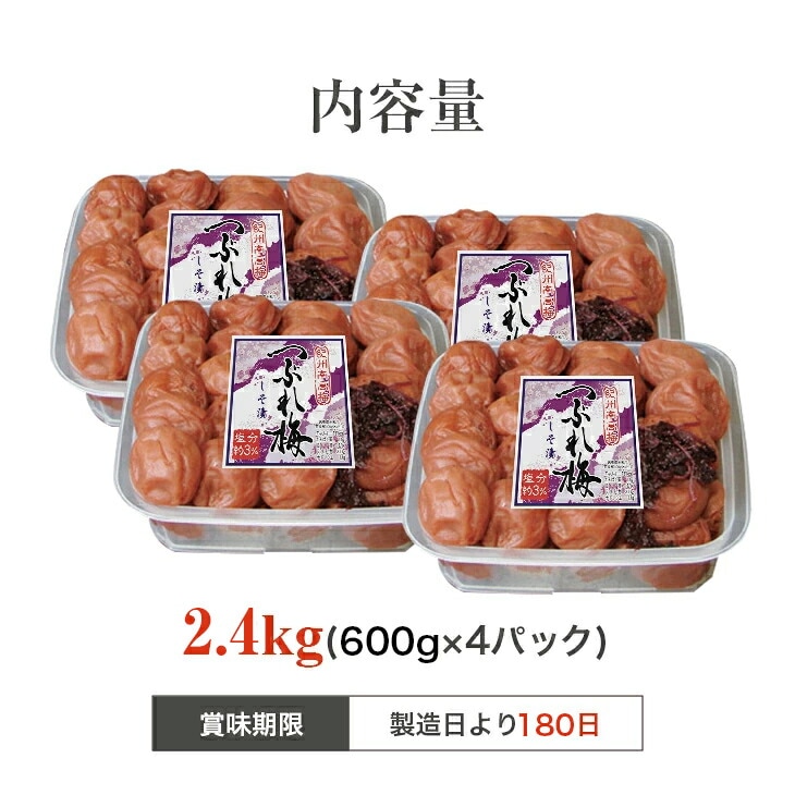 紀州南高梅 梅干し うめぼし つぶれ梅 しそ漬け 塩分約3% 2.4kg 600g×4パック