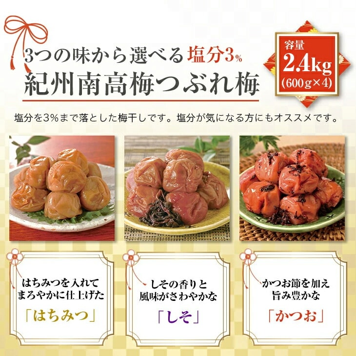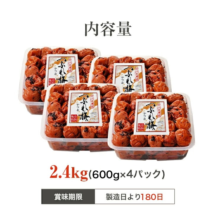 紀州南高梅 梅干し うめぼし つぶれ梅 かつお梅 塩分約3% 2.4kg 600g×4パック