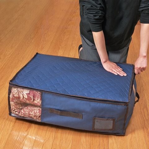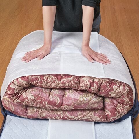 1個あたり約380〜420gと軽量ながら、丈夫なポリエステル・不織布製。通気性が良いため、長期間の保管でも中身を健やかに保ちます。中身を詰め込んでも形が崩れにくく、クローゼットや押し入れへの積み重ねもスムーズ。次のシーズンも、洗いたてのような清潔感で気持ちよく使い始められます。