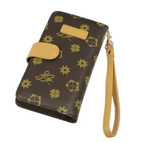 ルイ・ガルシア スマホケース 手帳型 多機種対応 ロゴグラム ブラウン スライド式 カード収納 ストラップ付 合成皮革 高級感 万能ケース スマホカバー