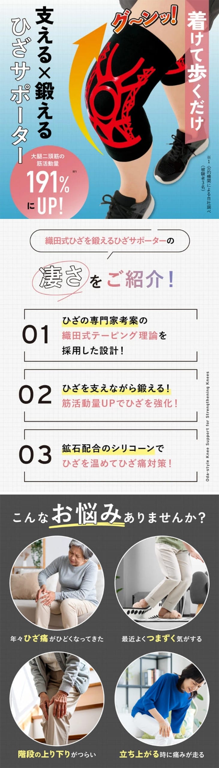 歩く喜びを取り戻す。織田式ひざを鍛えるひざサポーター 4枚組
