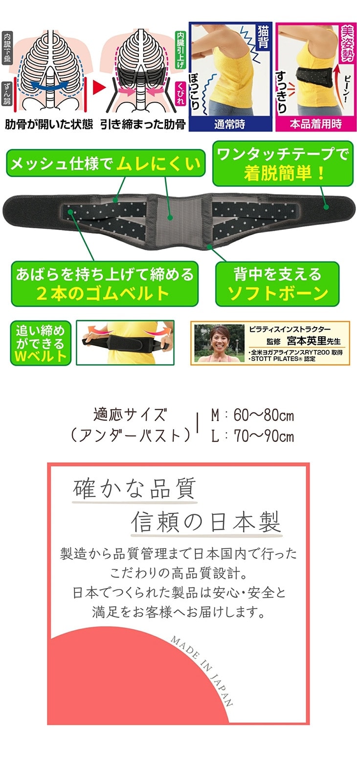 エリ先生の美姿勢あばらWベルト 日本製 ベルト サポーター メッシュ あばら骨ベルト あばらベルト 美姿勢ベルト 矯正ベルト 猫背対策 補正ベルト 引き締め