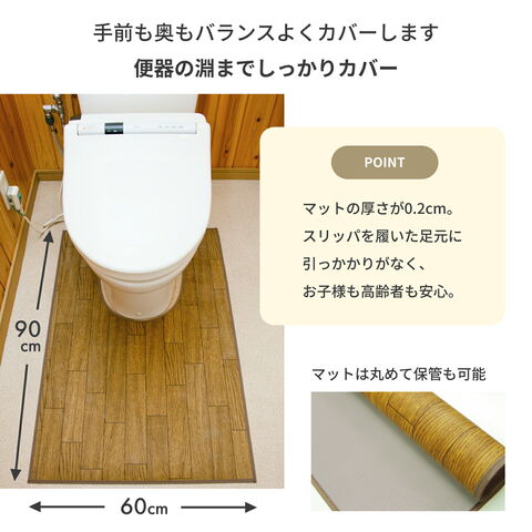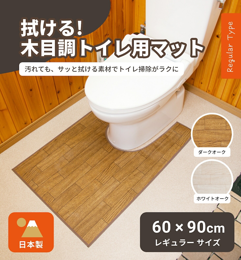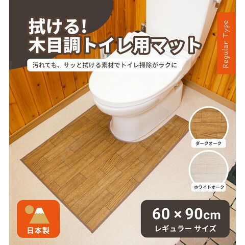 拭けるトイレマット 木目調 レギュラー 60×90cm 撥水 滑り止め 日本製 お手入れ簡単 洗濯不要 抗菌 防汚 ビニール ダークオーク ホワイトオーク