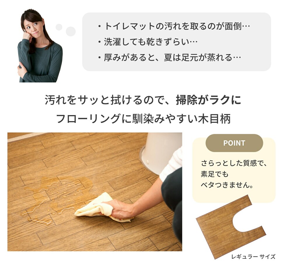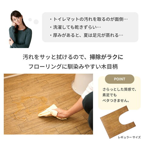 汚れてもサッと拭くだけ。拭ける!木目調トイレ用マット(レギュラー)