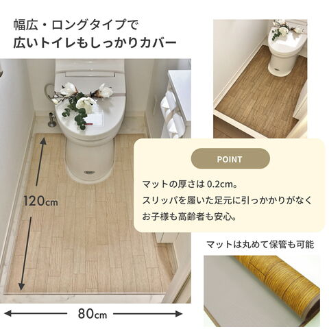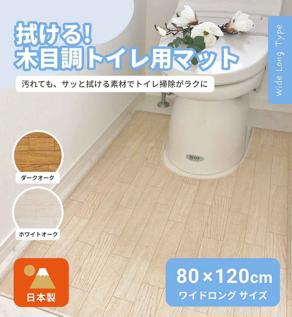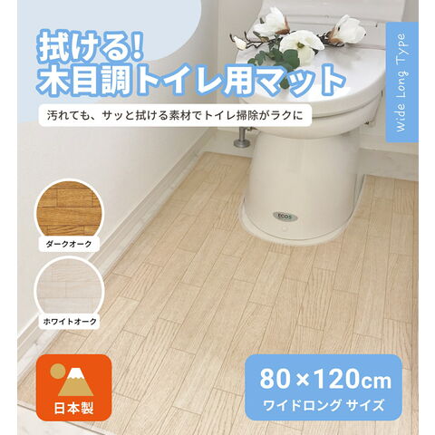 トイレマット 拭ける 木目調 ワイドロング 80×120cm 大判 撥水 日本製 お手入れ簡単 洗濯不要 抗菌 防汚 ビニール ダークオーク ホワイトオーク