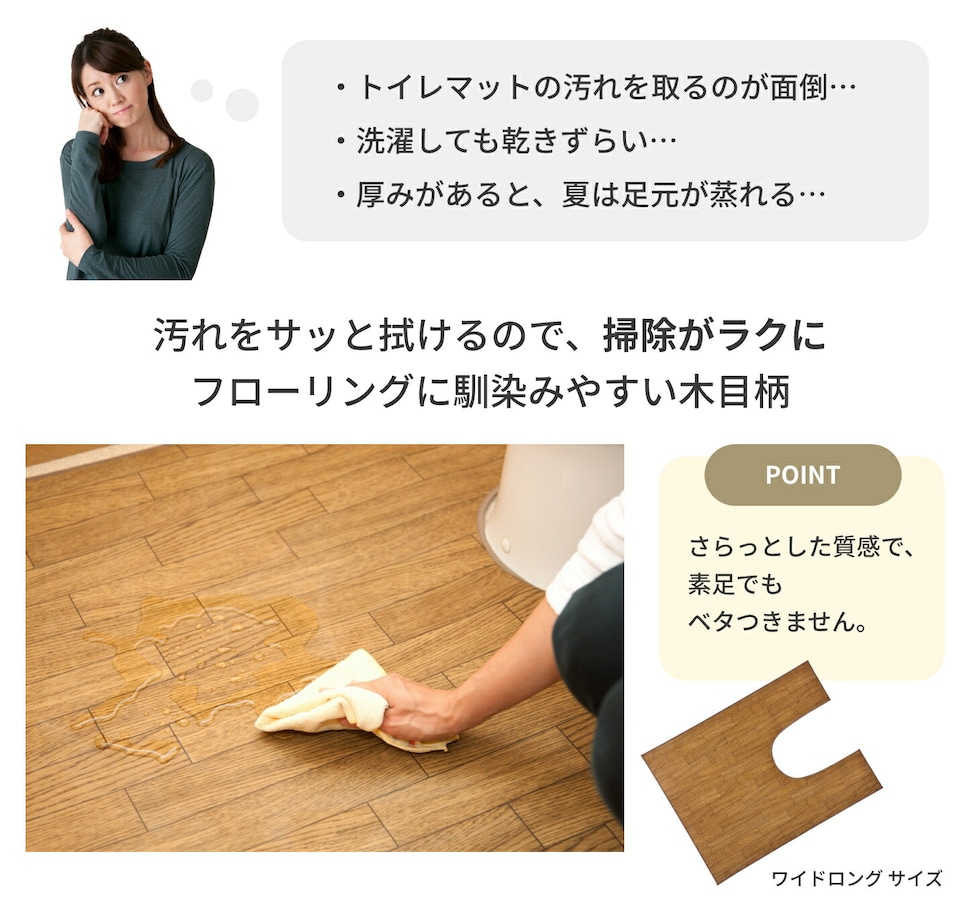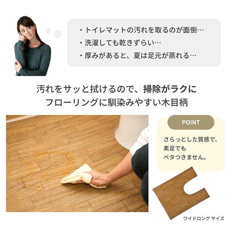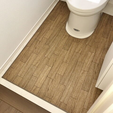 広いトイレも隅々までガード。拭ける!木目調トイレ用マット(ワイドロング)