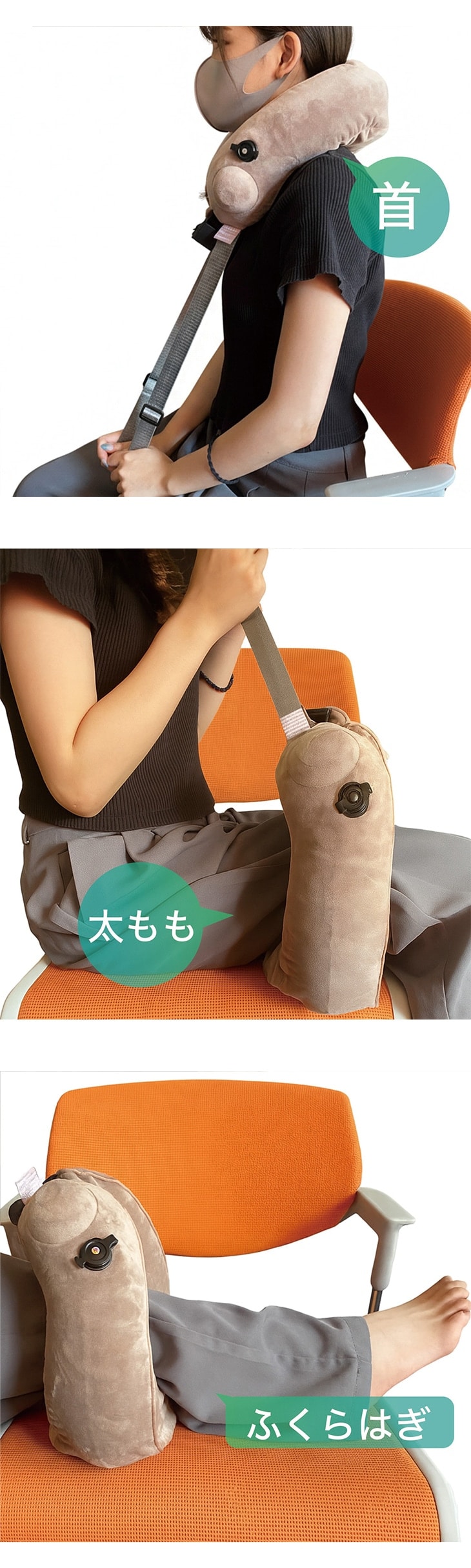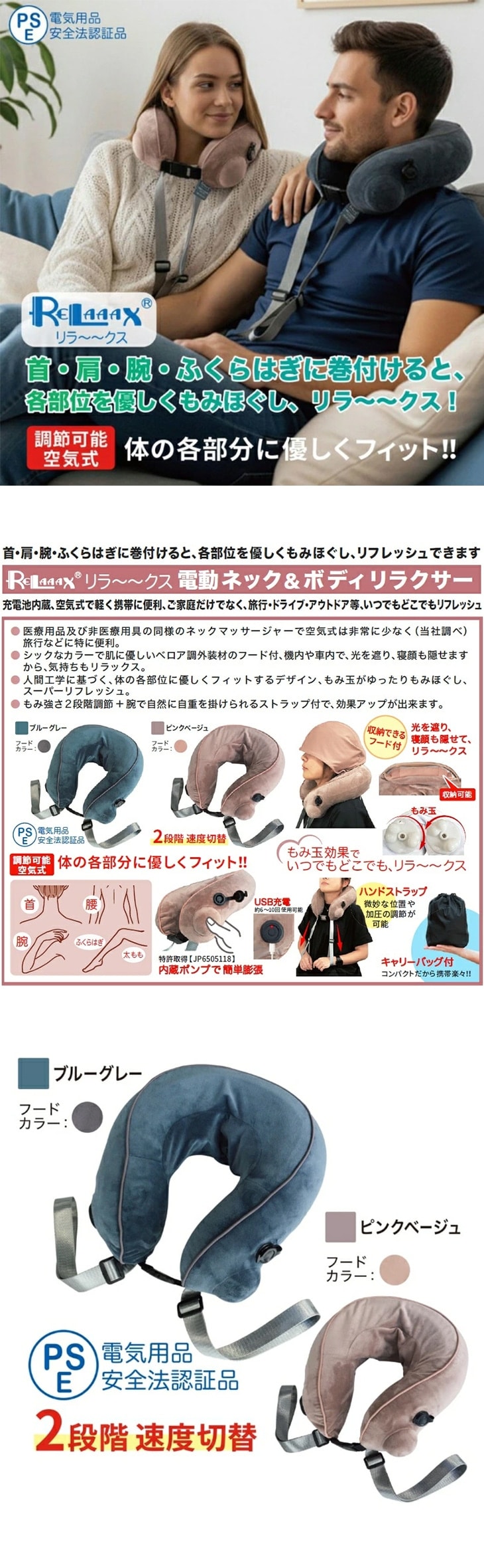 RELAAAX 電動ネック&ボディリラクサー ネックピロー 空気式 充電式 もみほぐし 寝顔が見えない フード付き