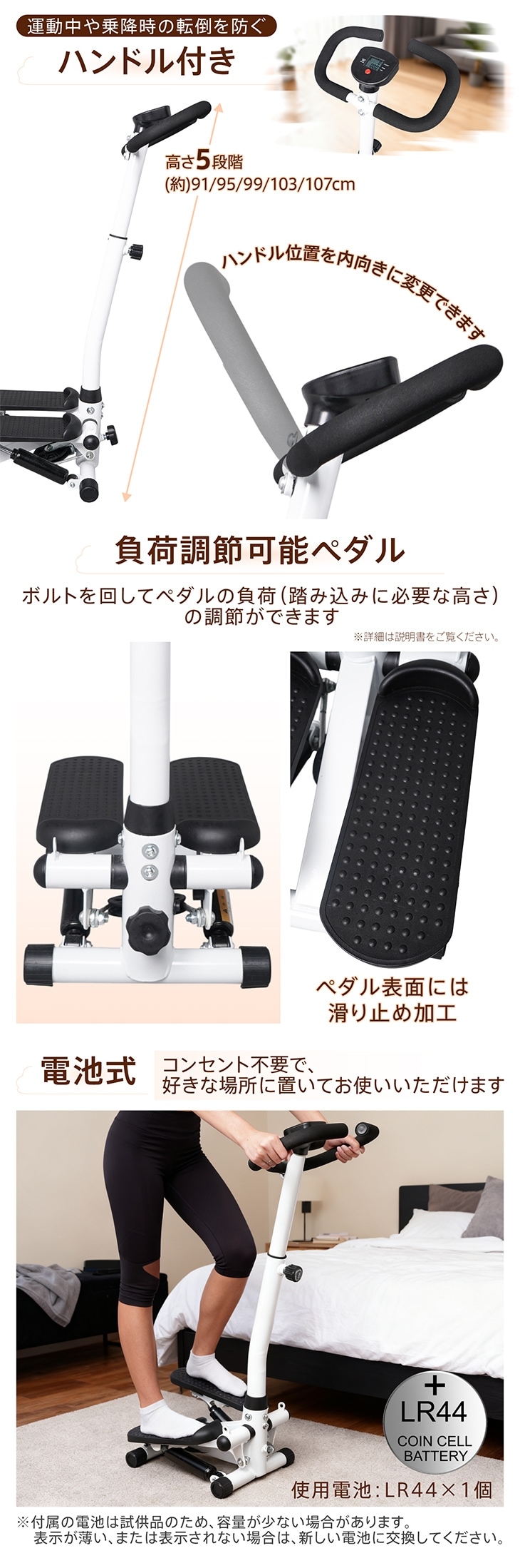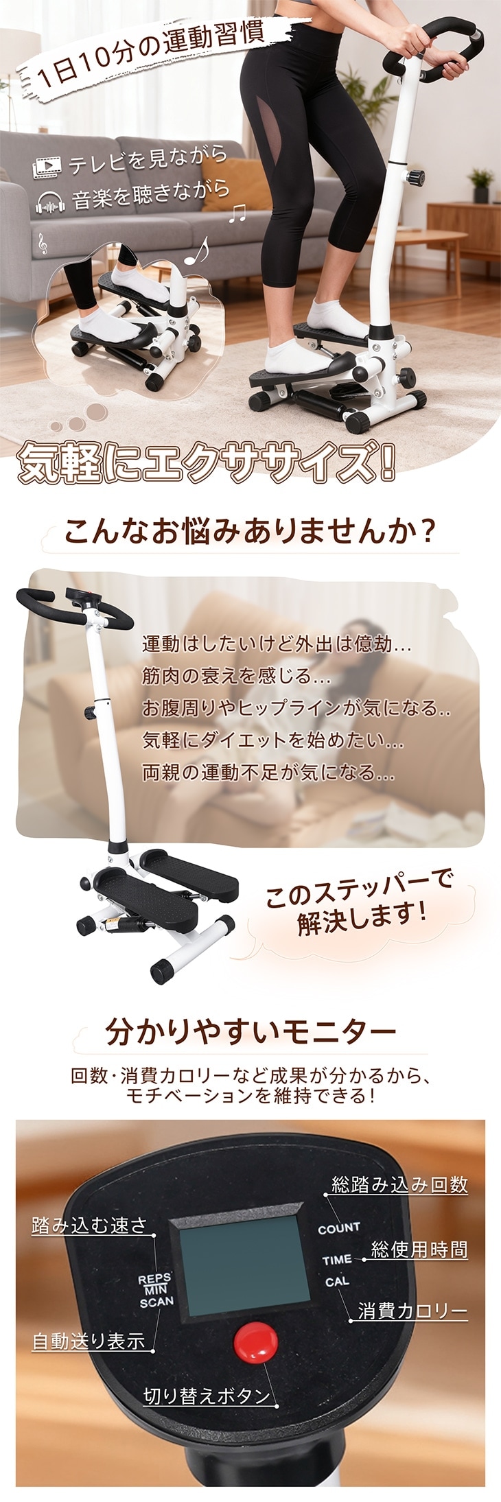 【出荷予定:4月中旬頃】ハンドル付きステッパー 足踏み運動器 負荷調節 モニター付き 室内 運動 エクササイズ