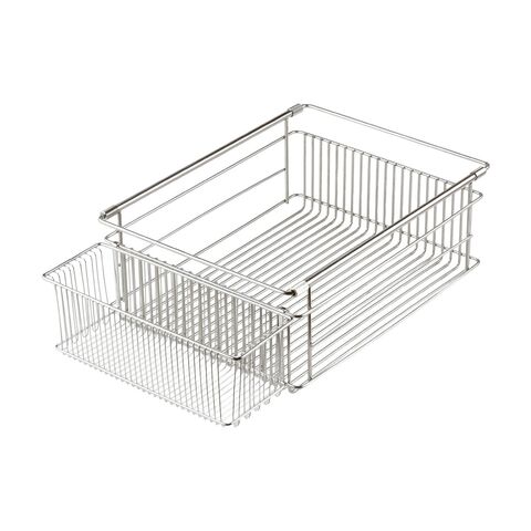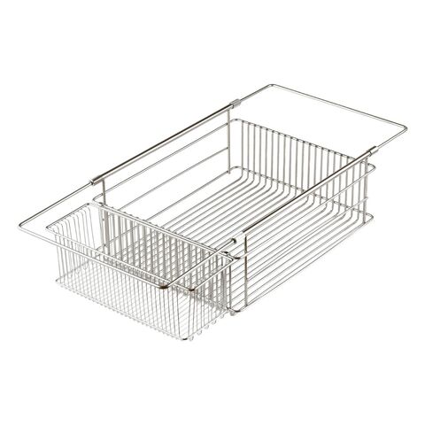 最大の特徴は、シンクの幅に合わせて約33.7cmから54cmまで長さを調節できるスライド構造。ご自宅のシンクにぴったりと固定でき、安定感も抜群です。底面のワイヤーは、ラバーゼ独自の「交差がない」シンプルな設計。汚れがたまりやすい溶接部分を極限まで減らしているため、サッと洗うだけで常に清潔な状態を保てます。