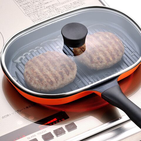 中までしっかり火を通したい時に欠かせない、専用のガラス蓋がセットになっています。焼き加減を常に確認できるため、焦げ付きを防いで理想的な状態に。ガス火はもちろん、IH200Vにも対応しているため、キッチンを選ばずお使いいただけます。大きなグリルを洗う手間から解放され、焼き魚がもっと食卓に並びやすくなる一台です。
