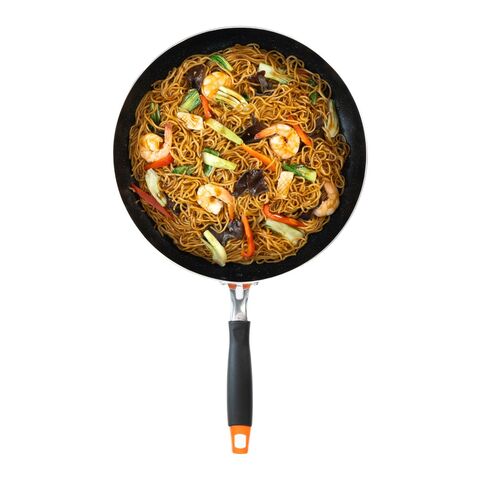 直径32cmという広々とした設計により、冷凍餃子なら24個以上、一度に約30個近くを並べて焼くことができます。ハンバーグやステーキを数枚並べてもスペースに余裕があるため、食材同士が重ならず、きれいな焼き色がつくのも魅力。深さもしっかりあるため、山盛りの焼きそばやチャーハンを豪快に振っても、具材が外へ飛び散りにくく安心です。