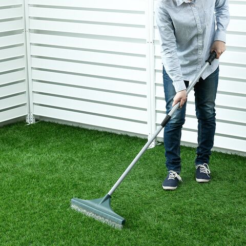 基本の設置は、使いたい場所に広げて敷くだけ。ご家庭にあるハサミで簡単にカットできるので、お庭のカーブや室外機の周りなど、形状に合わせて隙間なくキレイに敷き詰めることが可能です。固定用のU字ピンも付属しており、届いたその日に作業が始められます。