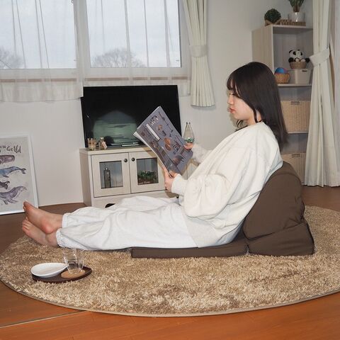 絶妙な傾斜が付いているため、横になった状態でも視線をテレビや本へ楽に向けられます。手で頭を支える必要がなく、肩や首への負担を軽減。座卓でお茶を飲む際や、ちょっとした作業時の背もたれとしても、ちょうど良い高さに設計されています。