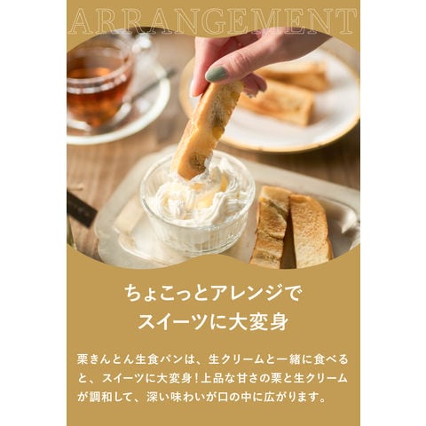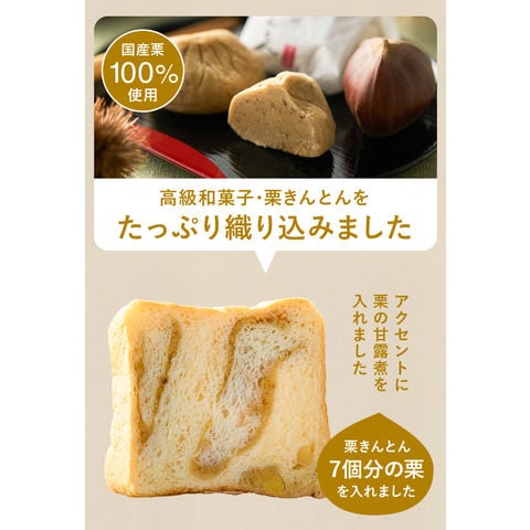 | 原材料名 | 小麦粉(国内製造)、栗きんとんあん(栗、砂糖)、栗甘露煮(栗、砂糖)、砂糖、バター、 脱脂粉乳、食塩、パン酵母 /着色料(クチナシ色素)(一部に小麦・乳成分を含む) |