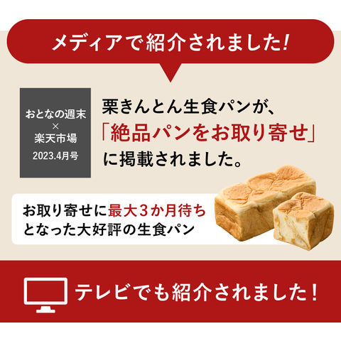 ![]() ![]() ![]() ![]() 乃が美 (のがみ) / 銀座に志かわ / MIYAbI / CENTRE THE bAKERY / パンのとら /など 近年話題の 生食パン ちこり村パン工房で大好評の新しい 生食パン が「栗きんとん生食パン」 ちこり村で1日2,000斤以上も売れました!! お取り寄せに最大3か月待ちとなったご当地グルメです! ![]() ![]() ![]() ![]()