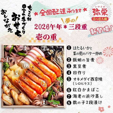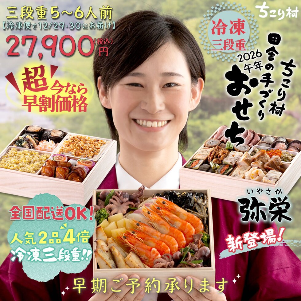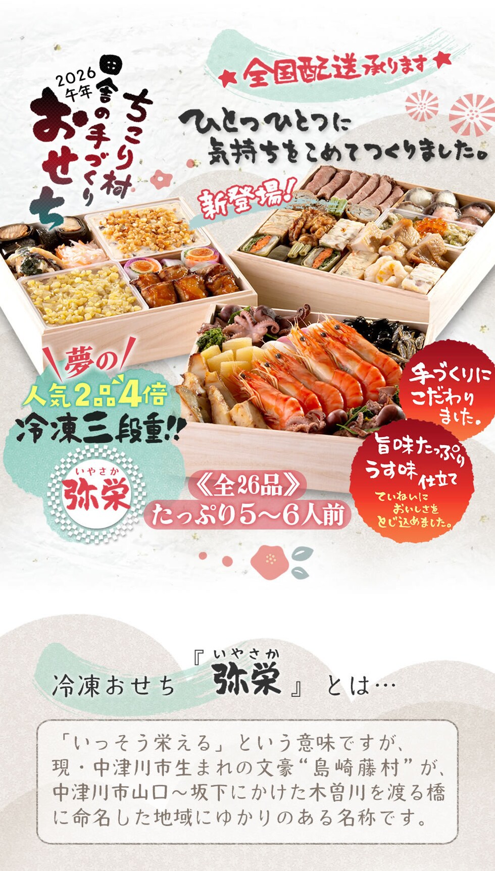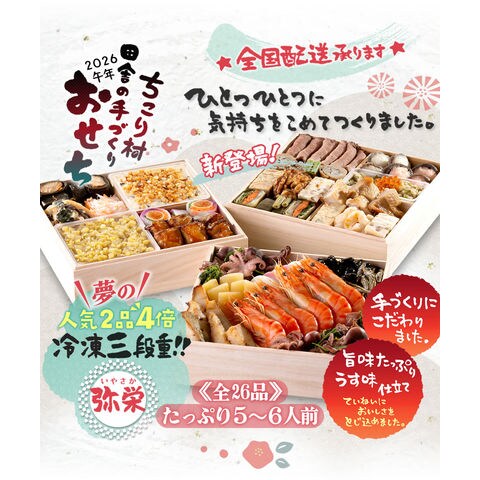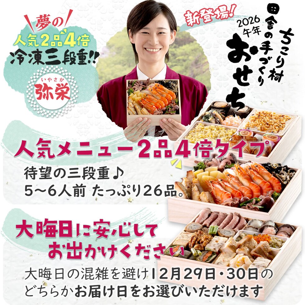 ちこり村 田舎の手づくりおせち〔弥栄*いやさか〕人気メニュー増量タイプ * 三段重 5~6人前〈全26品〉新メニュー4品