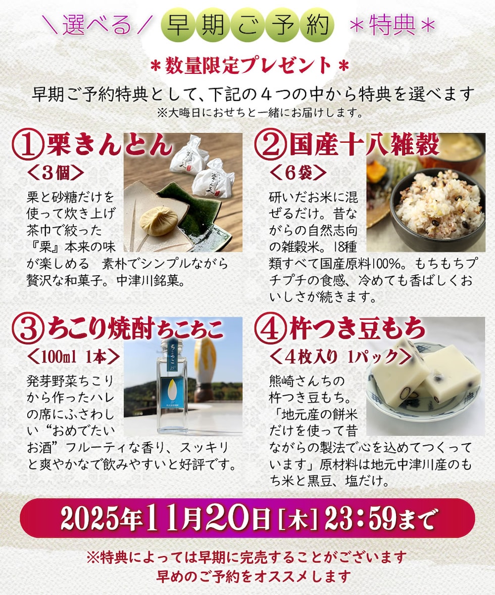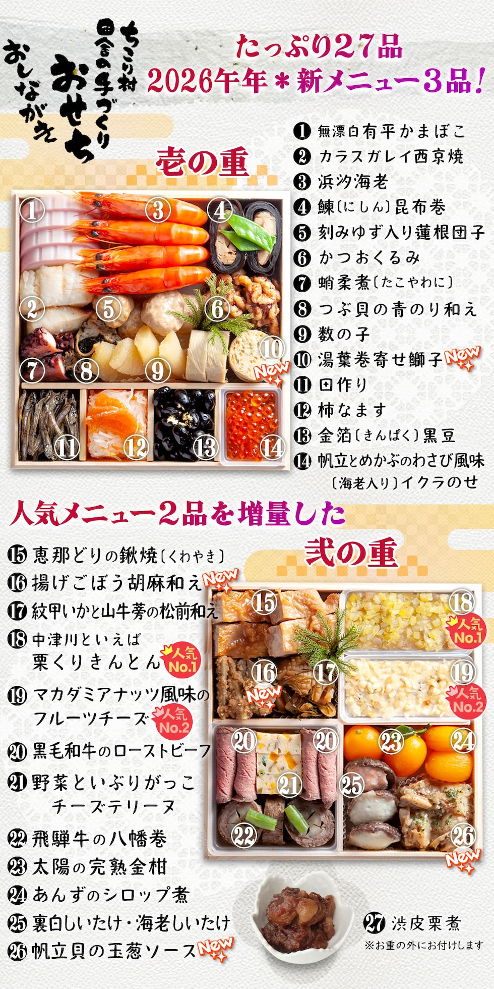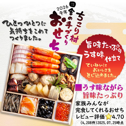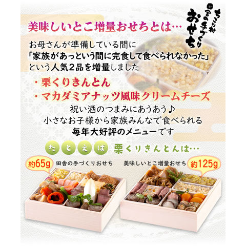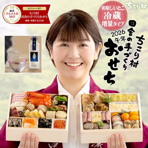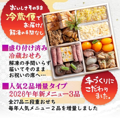ちこり村 田舎の 手づくり 《美味しいとこ増量》人気メニュー2品増量 おせち 二段重3~4人前 冷蔵 便でお届け♪