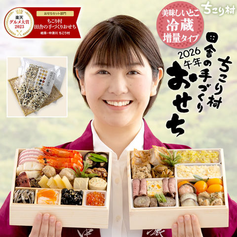 ちこり村 田舎の 手づくり 《美味しいとこ増量》人気メニュー2品増量 おせち 二段重3~4人前 冷蔵 便でお届け♪