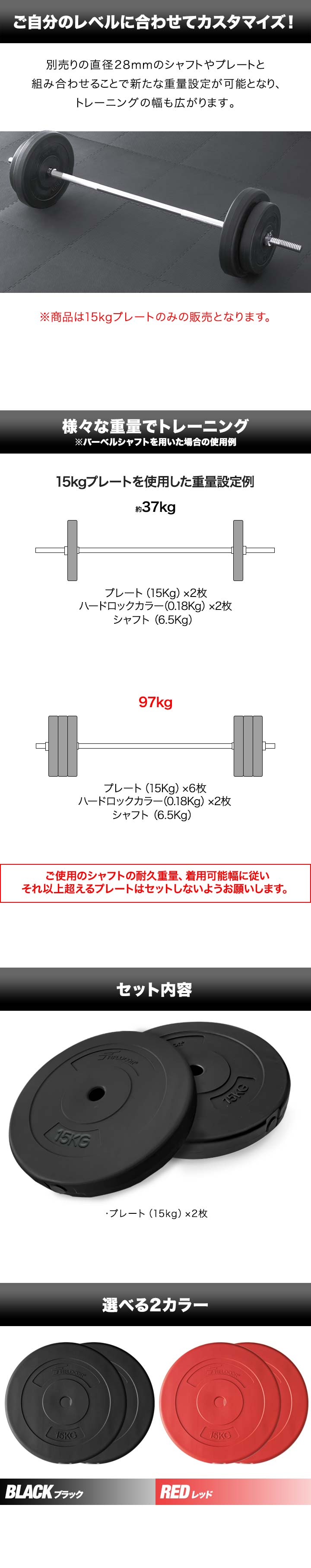 FIELDOOR バーベル 用 (ブラック) プレート 15kg 2個セット ポリエチレンコート 追加プレート 追加 ダンベルプレート バーベルシャフト 用 ダンベル 筋トレ トレーニング シェイプアップ 重り 交換 パーツ カスタマイズ オプション 計30kg 送料無料