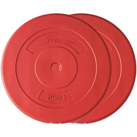 FIELDOOR バーベル 用 (レッド) プレート 15kg 2個セット ポリエチレンコート 追加プレート 追加 ダンベルプレート バーベルシャフト 用 ダンベル 筋トレ トレーニング シェイプアップ 重り 交換 パーツ カスタマイズ オプション 計30kg 送料無料