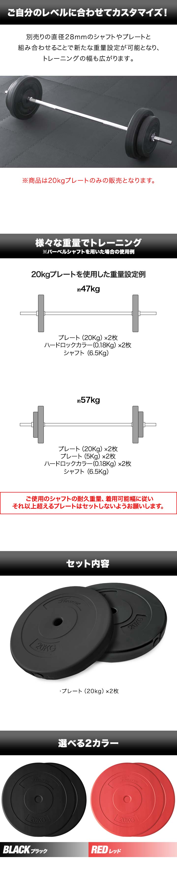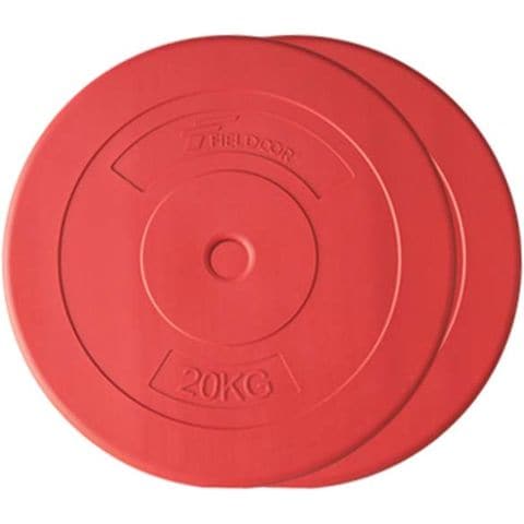 FIELDOOR バーベル 用 (レッド) プレート 20kg 2個セット ポリエチレンコート 追加プレート 追加 ダンベルプレート バーベルシャフト 用 ダンベル 筋トレ トレーニング シェイプアップ 重り 交換 パーツ カスタマイズ オプション 計40kg 送料無料