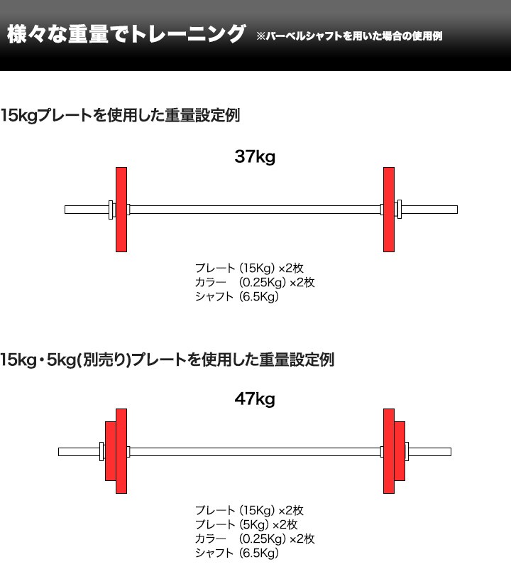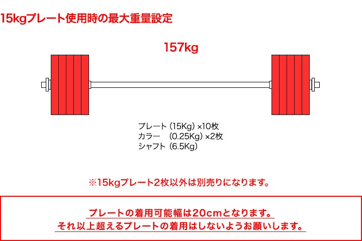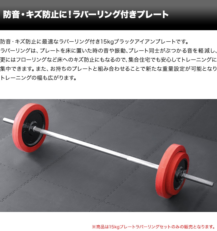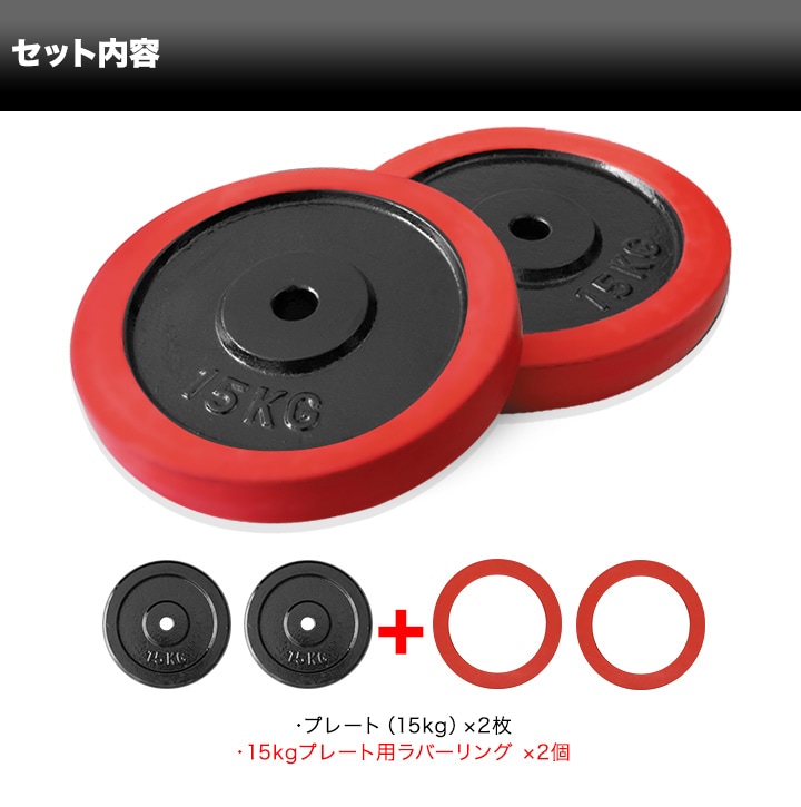 | セット内容 | ・15kgプレート×2 ・15kgプレート用ラバーリング×2 |