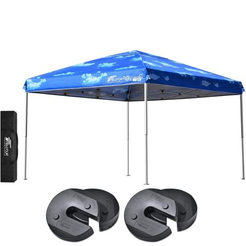 FIELDOOR ワンタッチタープテント 3m (標準:ブルースカイ/スチール/4点脚ロック/ウエイト4点組み) テント タープ ワンタッチ ワンタッチテント ワンタッチタープ UV加工 撥水 ベンチレーション 収納バッグ付 日よけ キャンプ バーベキュー 送料無料