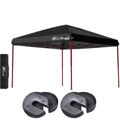 FIELDOOR ワンタッチタープテント 3m (標準:ブラック/スチール/4点脚ロック/ウエイト4点組み) テント タープ ワンタッチ ワンタッチテント ワンタッチタープ UV加工 撥水 ベンチレーション 収納バッグ付 日よけ キャンプ バーベキュー 送料無料