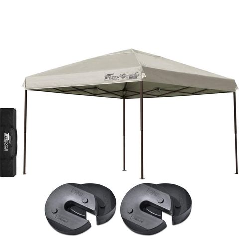 FIELDOOR ワンタッチタープテント 3m (標準:ライトベージュ/スチール/4点脚ロック/ウエイト4点組み) テント タープ ワンタッチ ワンタッチテント ワンタッチタープ UV加工 撥水 ベンチレーション 収納バッグ付 日よけ キャンプ バーベキュー 送料無料