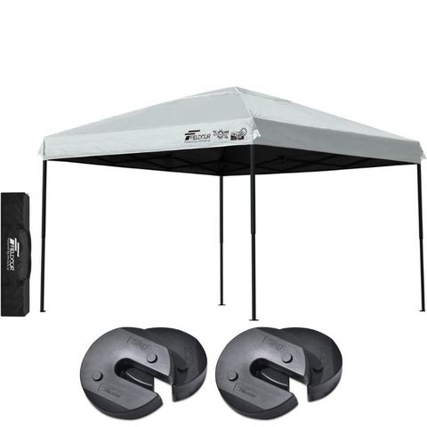 FIELDOOR ワンタッチタープテント 3m (遮光遮熱PU:グレー/スチール/4点脚ロック/ウエイト4点組み) テント タープ ワンタッチ ワンタッチテント ワンタッチタープ UV加工 撥水 ベンチレーション 収納バッグ付 日よけ キャンプ バーベキュー 送料無料