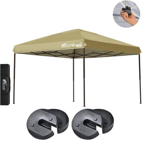 FIELDOOR ワンタッチタープテント 3m (標準:サンド/スチール/センターロック/ウエイト4点組み) テント タープ ワンタッチ ワンタッチテント ワンタッチタープ UV加工 撥水 ベンチレーション 収納バッグ付 日よけ キャンプ バーベキュー 送料無料