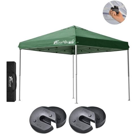 FIELDOOR ワンタッチタープテント 2.5m (標準:グリーン/スチール/センターロック/ウエイト4点組み) テント タープ ワンタッチ ワンタッチテント ワンタッチタープ UV加工 撥水 ベンチレーション 収納バッグ付 日よけ キャンプ バーベキュー 送料無料