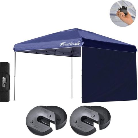 FIELDOOR ワンタッチタープテント 3m (標準:ブルー/スチール/センターロック/ウエイト4点組み/サイドシート1枚付) テント タープ ワンタッチ ワンタッチテント ワンタッチタープ UV加工 撥水 ベンチレーション 収納バッグ付 日よけ キャンプ バーベキュー 送料無料