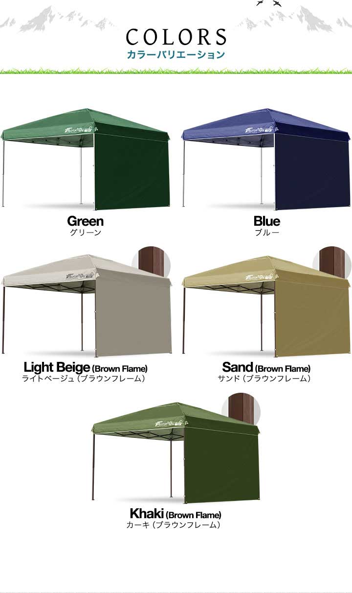 | 付属品: ・専用サイドシート(1枚) ・ロープ ・ペグ ・収納バッグ ・取扱説明書 |